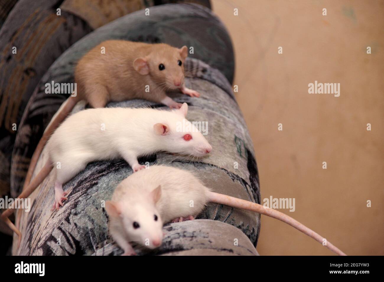 Several Decorative House Rat On The Edge Of The Sofa Fancy Rat Stock Photo Alamy